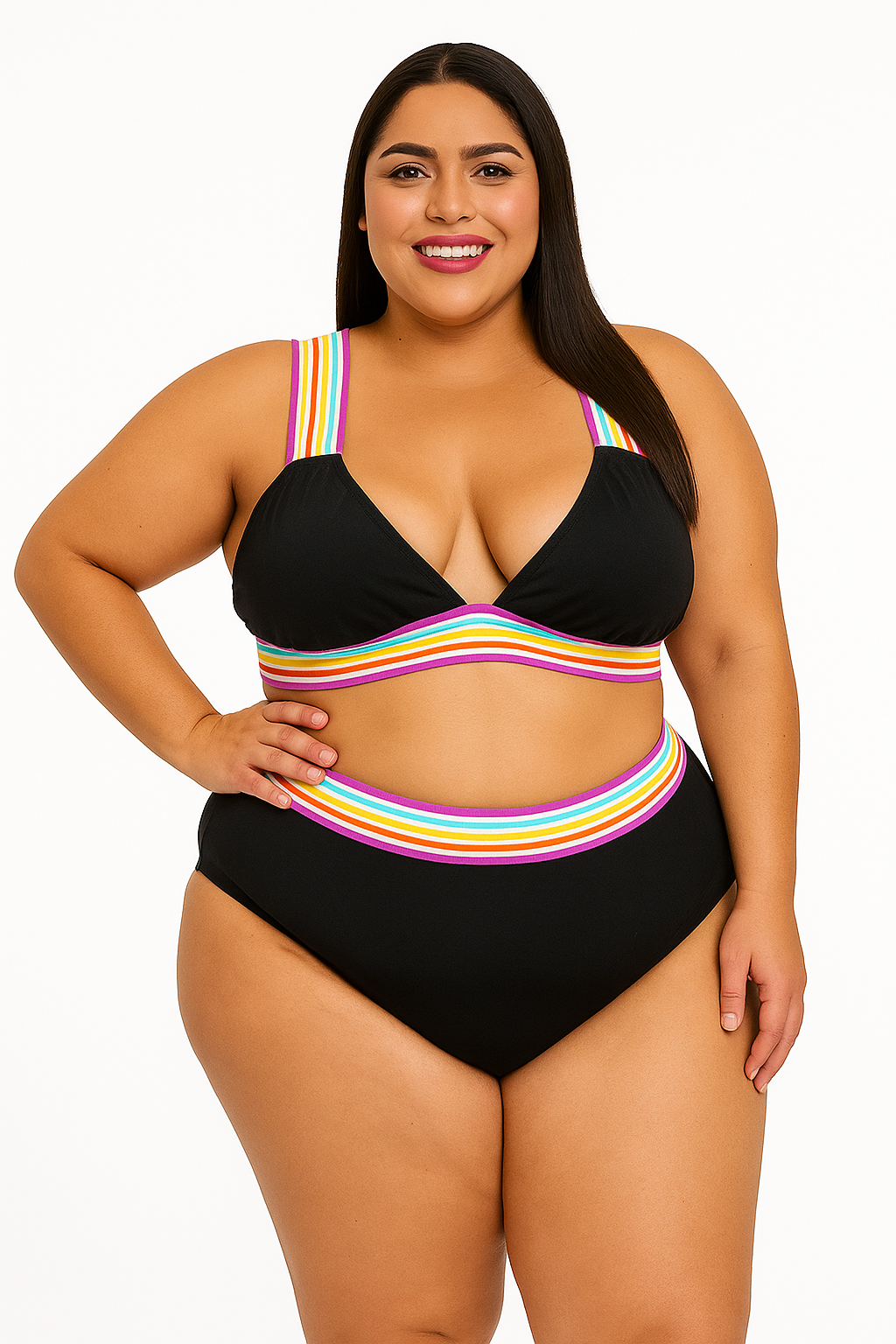 Biquíni plus size em poliamida forrado, corte bumbum duplo, amarração nas costas