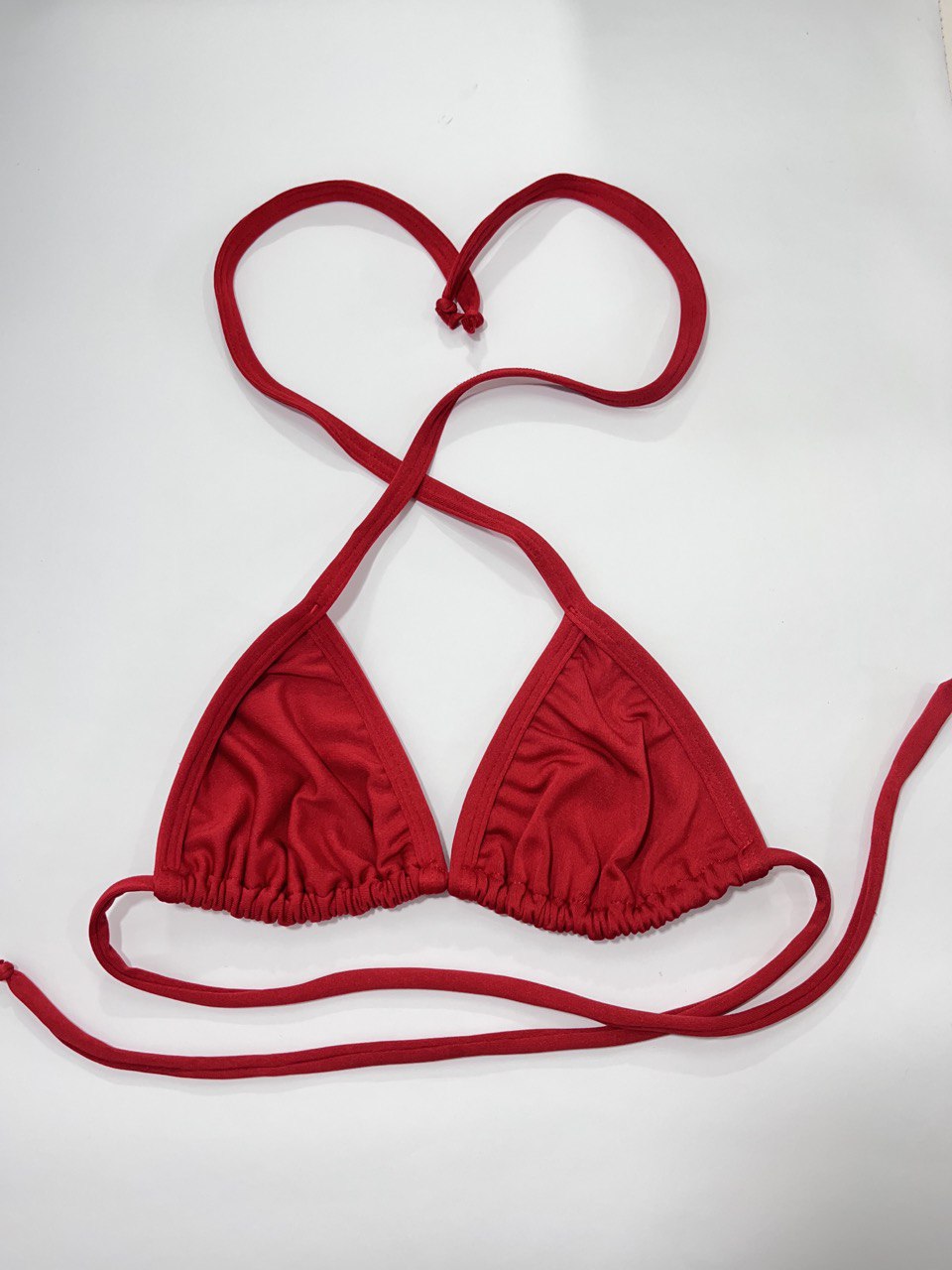 Top cortininha de poliéster tratado com toque macio, forrado com alças para amarrar no pescoço e nas costas.